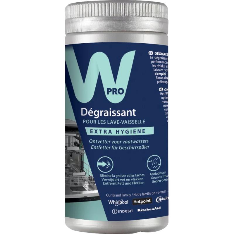 Marque : WHIRLPOOL/INDESIT Référence de l'article : 484000008873 Code EAN : 8015250595857 - POUR LAVE-VAISSELLE Le dégraissant antiodeurs élimine les dépôts de graisses, les résidus alimentaires et empêche l'apparition de mauvaises odeurs. Le lave-vaisselle retrouve ainsi une propreté impeccable. Contenance : 250 g - monodose. La recommandation : Dans le lave-vaisselle vide, verser le contenu du flacon dans la cuve et démarrer un programme long sans prélavage. Il est recommandé de renouveler l'opération tous les 6 mois.